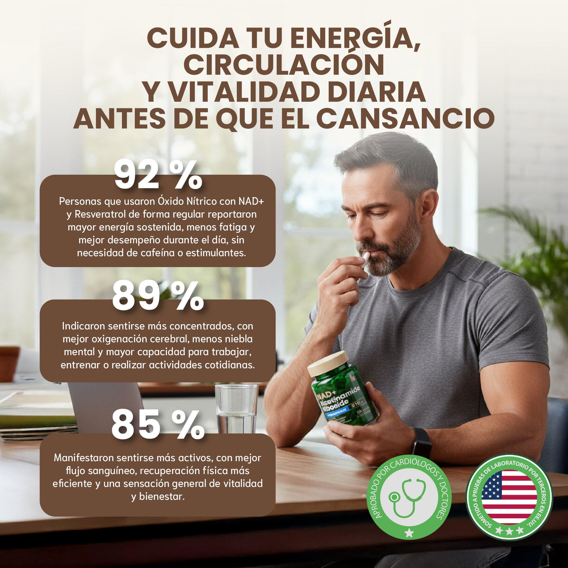 ✅ Ingredientes: NAD+, Resveratrol, cápsulas vegetales.